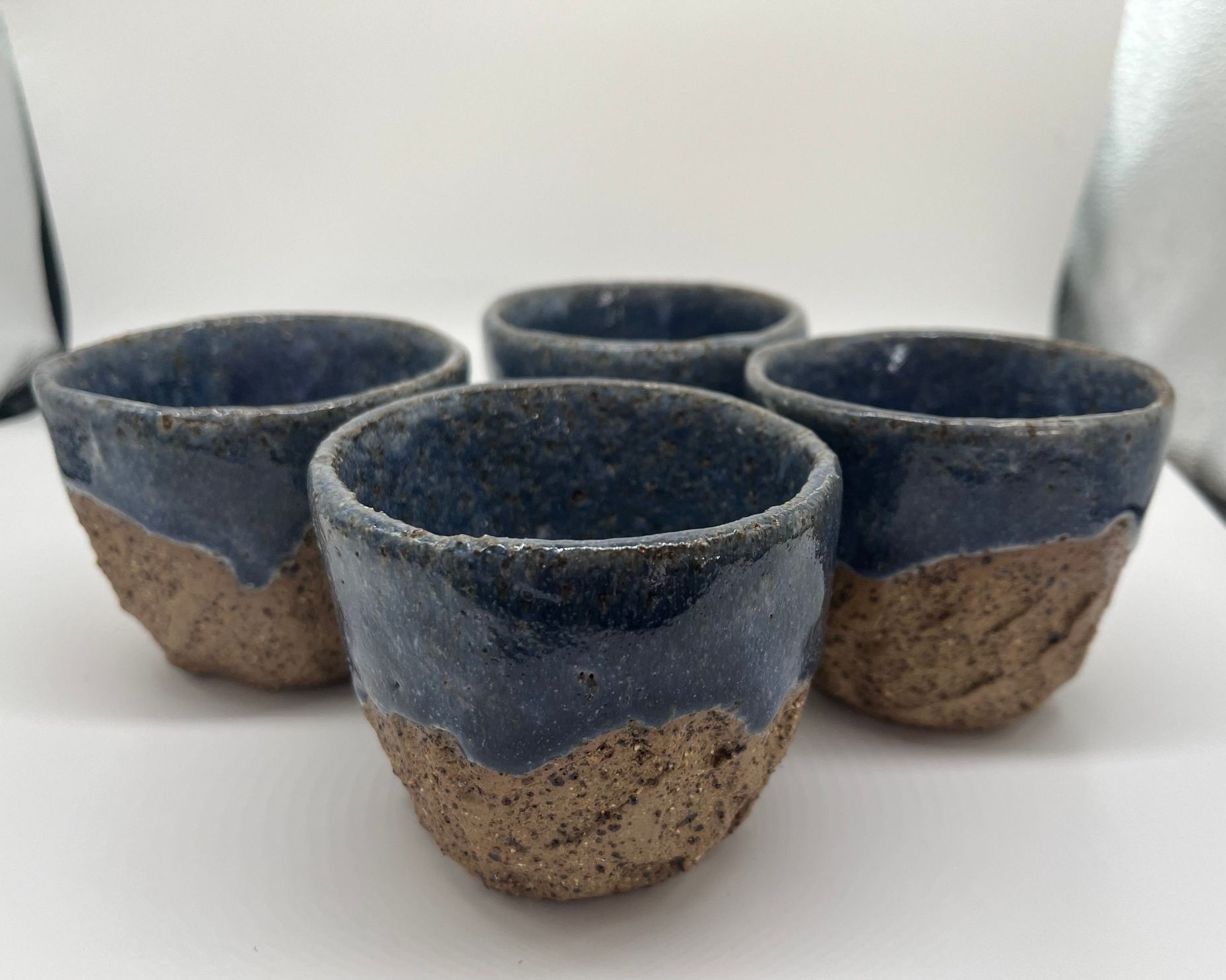 Each set is unique and includes 4 hand built cups in the same style. This particular set is sold, however if you are interested in the style enquire for a custom make.