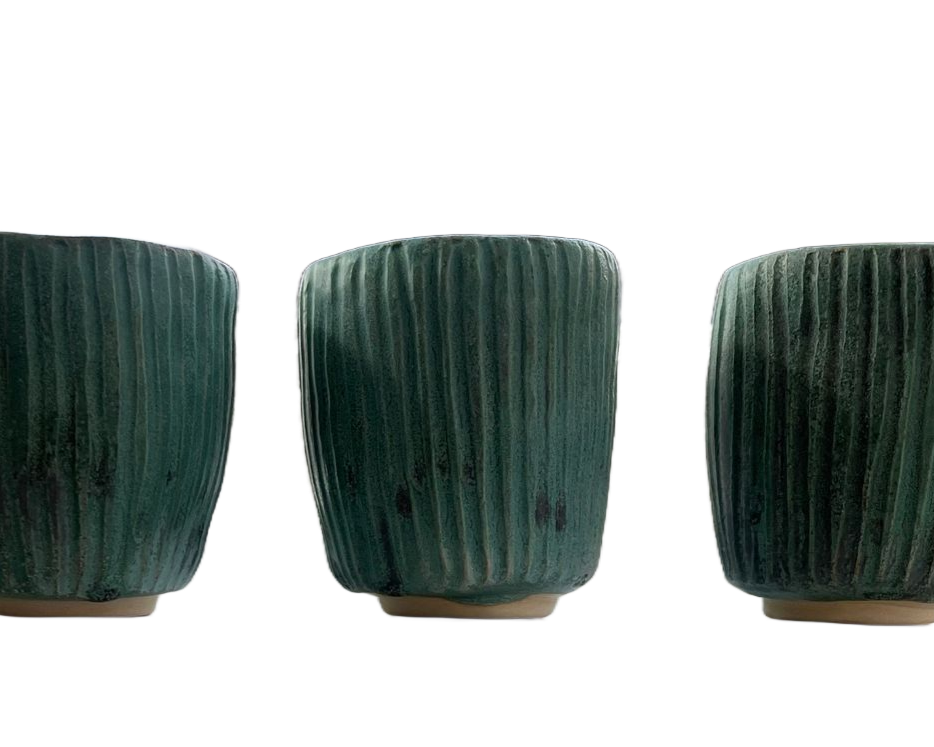 Each set is unique and includes 4 hand built cups in the same style. This particular set is sold, however if you are interested in the style enquire for a custom make.